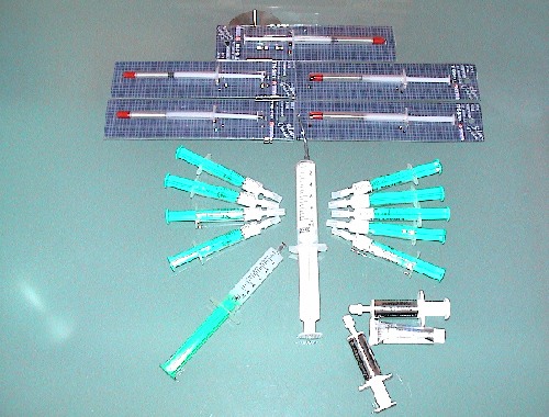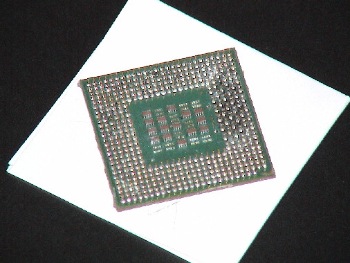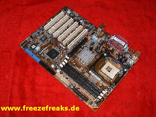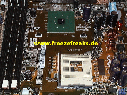 Und dann können wir mit dem "präparieren" des Boards (respektive des Sockels) und der CPU beginnen. Wer sich die großen Silikonkartuschen aus dem Baumarkt gekauft hat, sollte erstmal 5 Spritzen á 20-30 ml abfüllen. Wir nehmen uns das Board als erstes vor. Hier verwende ich mal ein normales Asus P4B533 Rev. 1.06 und einen Intel Pentium 4 2,8 GHZ.
