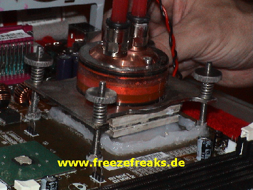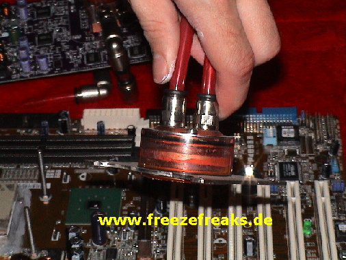 1. Das Peltier immer genau SO wie beim Test wieder anschliessen. Also den Kabelverlauf merken. Am besten lötet Ihr einen Molexstecker an das Peltierkabelende und eine Molexbuchse an zwei vom Netzteil abgehende Kabel. So kann ein mögliches Umpolen trotz Einbau/Umbau/Auswechseln vermieden werden.