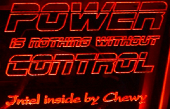 Zur Abwechslung noch ein kurzer Blick auf einen Teil meines Windows - daß eigentlich mehr eine komplette Front als nur ein Window darstellt. Mehr hierzu in der Casemodding-Section und der Einkaufsliste. Ariane und Bernd Kofahl machen mit Sicherheit einen riesigen Job bei diesen Windows. Einfach klasse, was die zwei da auf die Beine stellen und jeder Kunde ist in den besten Händen. Jedes Window ist ein absolutes Einzelstück, wird in nahezu jeder beliebigen Größe und in den unglaublichsten Motiven nach Wunsch gefertigt. Unnötig zu erwähnen daß ich und viele andere jedesmal total ausflippen wenn wieder mal ein Bild eines neuen Windows veröffentlich wird. Neidfaktor auf LANs : 100.