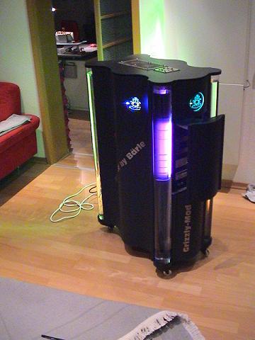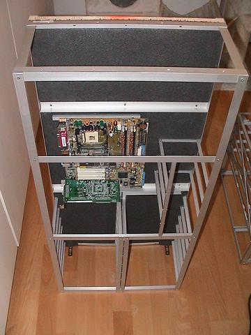 Short break again: the first thing have to plan exactly is the "inner construction". the case "outside" is only the form, but how will your hardware fits in ? How many harddisk have to do their work in the case ? Do you need space for watercooling components, do you want to change your motherboard, processor as easy as possible without de-installing all other components ? THESE Questions must be answered before you make the first cut! And this is the reason why the Grizzly (remember: its a Server Tower) is so huge and heavy. The "heart" of the construction is a selfmade aluminium construction...